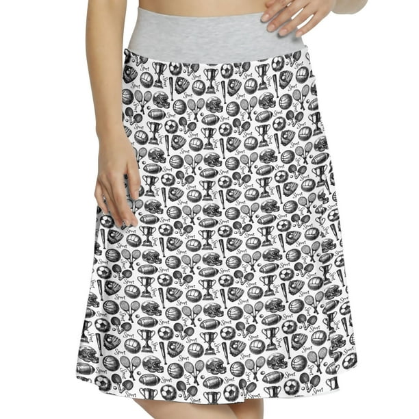 Women S Sports Sketch Pattern With Balls A Line Printed Skirt Casual Wear Xl Black White By Ambesonne Walmart Com